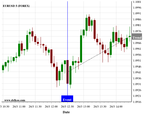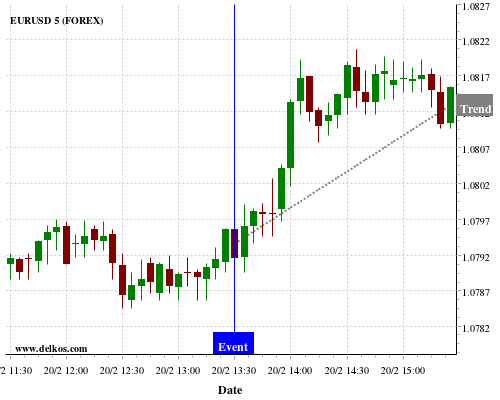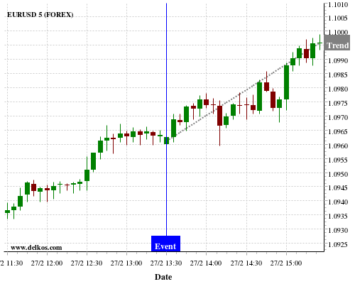 If the number is greater than than economists’ consensus there is a 75% probability that EURUSD will trend up following the news event.