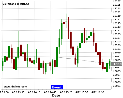 If the number is less than than economists’ consensus there is a 75% probability that GBPUSD will trend down following the news event.