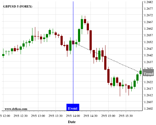 If the number is equal to than economists’ consensus there is a 75% probability that GBPUSD will trend down following the news event.