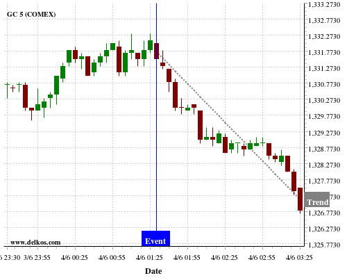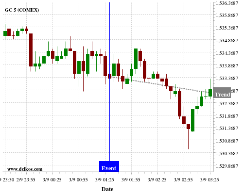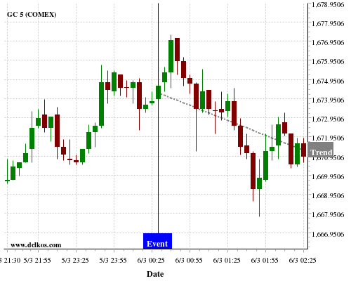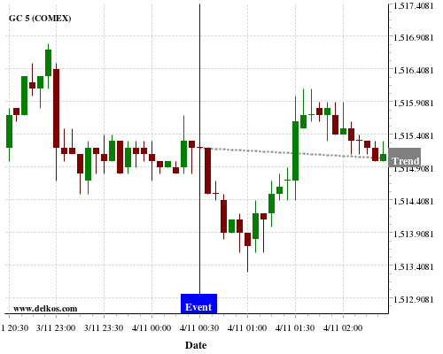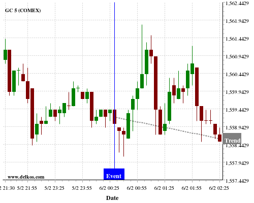 If the number is less than than economists’ consensus there is a 75% probability that GC will trend down following the news event.
