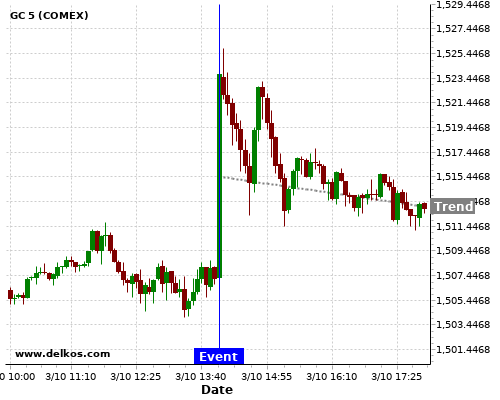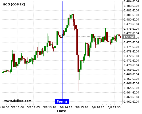 If the number is less than than economists’ consensus there is a 75% probability that GC will trend down following the news event.