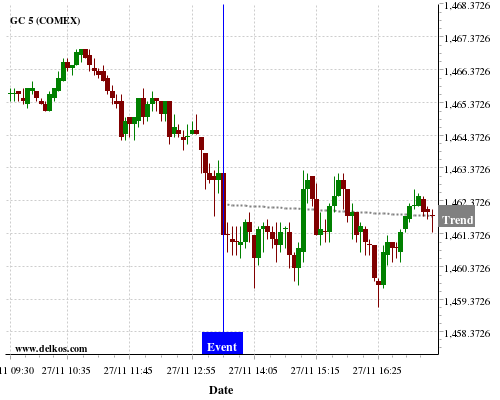 If the number is less than than economists’ consensus there is a 75% probability that GC will trend down following the news event.