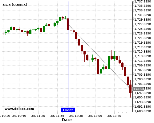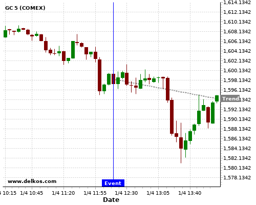 If the number is greater than than economists’ consensus there is a 75% probability that GC will trend down following the news event.