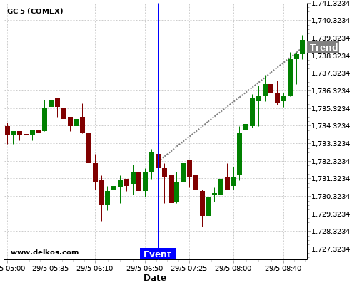 If the number is less than than economists’ consensus there is a 75% probability that GC will trend up following the news event.