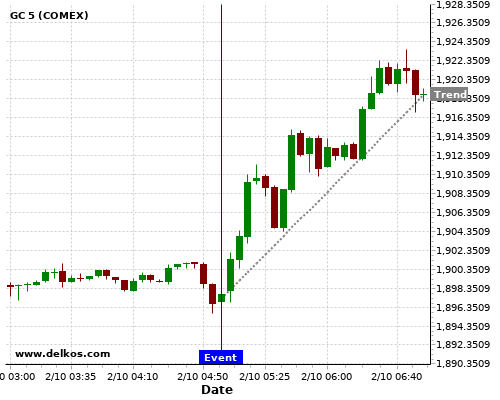 If the number is greater than than economists’ consensus there is a 75% probability that GC will trend up following the news event.