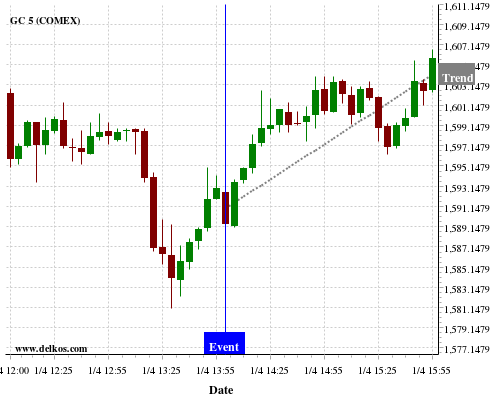 If the number is greater than than economists’ consensus there is a 75% probability that GC will trend up following the news event.
