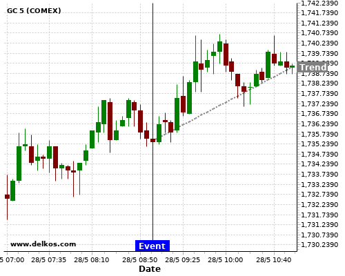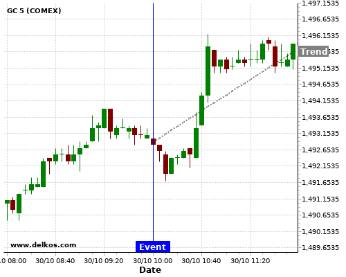 If the number is greater than than economists’ consensus there is a 75% probability that GC will trend up following the news event.