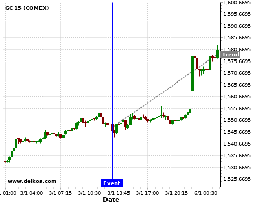 If the number is greater than than economists’ consensus there is a 75% probability that GC will trend up following the news event.