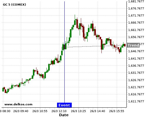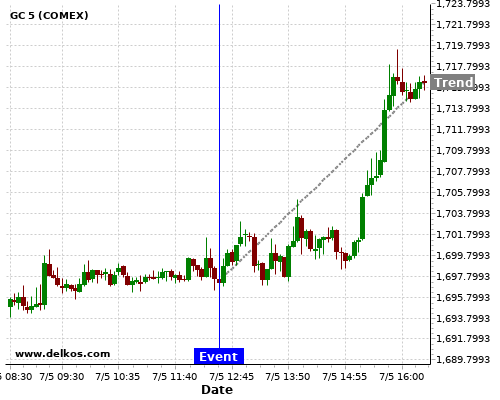 If the number is greater than than economists’ consensus there is a 75% probability that GC will trend up following the news event.