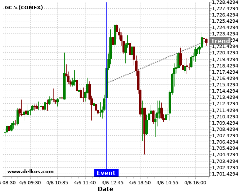 If the number is greater than than economists’ consensus there is a 75% probability that GC will trend up following the news event.