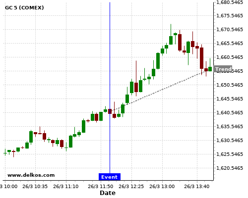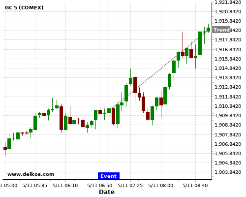 If the number is equal to than economists’ consensus there is a 75% probability that GC will trend up following the news event.