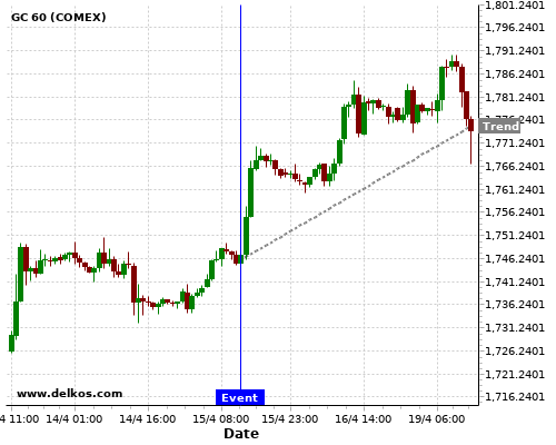 If the number is greater than than economists’ consensus there is a 75% probability that GC will trend up following the news event.