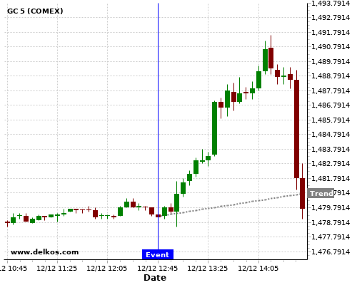 DELKOS 75% probability that GC will trend up on Thursday 21 Jan at 12:45 PM GMT if the EMU ECB Interest Rate Decision number is equal to 0%.