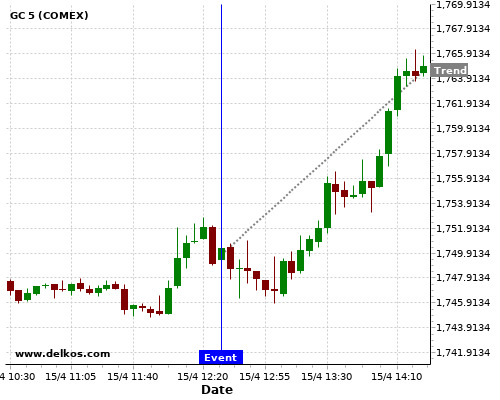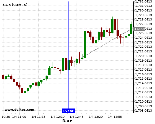 If the number is greater than than economists’ consensus there is a 75% probability that GC will trend up following the news event.