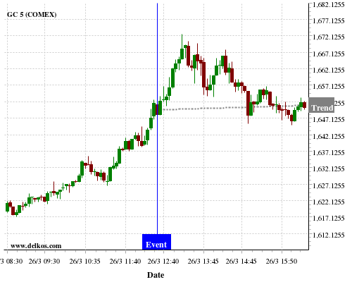 If the number is greater than than economists’ consensus there is a 75% probability that GC will trend up following the news event.