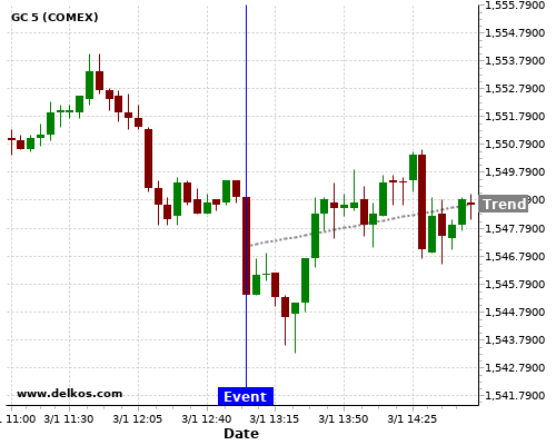 If the number is greater than than economists’ consensus there is a 75% probability that GC will trend up following the news event.