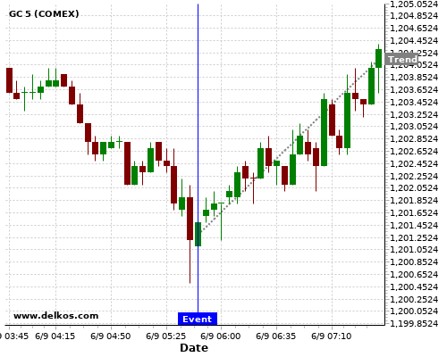 If the number is greater than than economists’ consensus there is a 75% probability that GC will trend up following the news event.