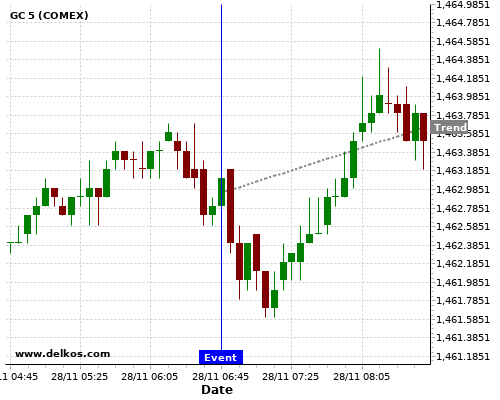 DELKOS 75% probability that GC will trend up on Tuesday 01 Dec at 06:45 AM GMT if the CH GDP Growth Rate QoQ number is greater than 5.9%.