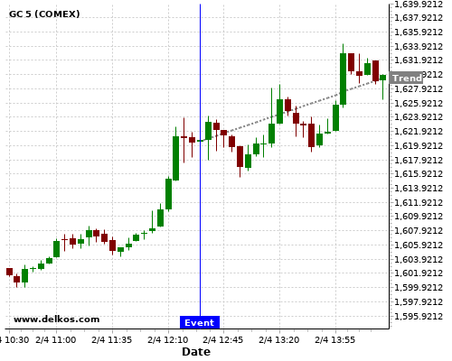 If the number is greater than than economists’ consensus there is a 75% probability that GC will trend up following the news event.