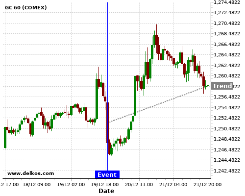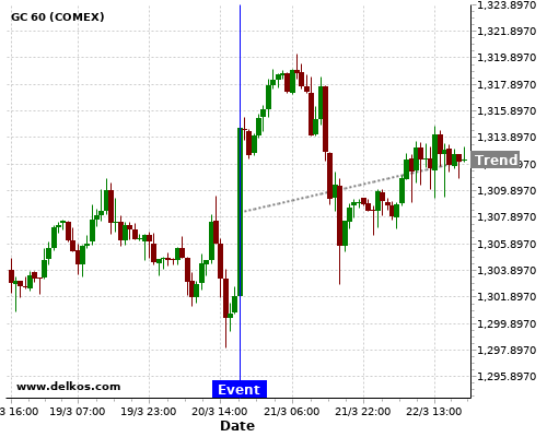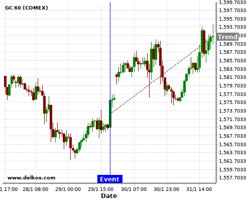This probability is based on the last 12 US Fed Interest Rate Decision events, in which 9 of the last 12 events where the actual number was equal to than the economist consensus resulted in an up trend of GC.