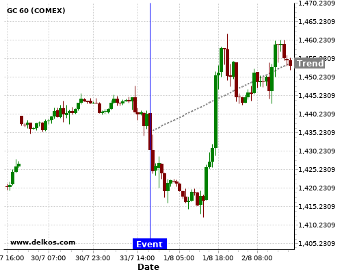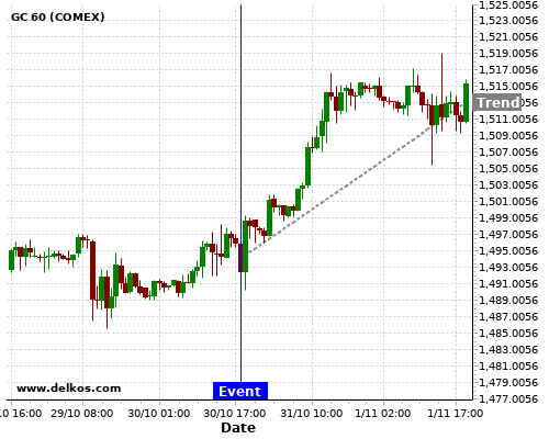 If the number is equal to than economists’ consensus there is a 75% probability that GC will trend up following the news event.