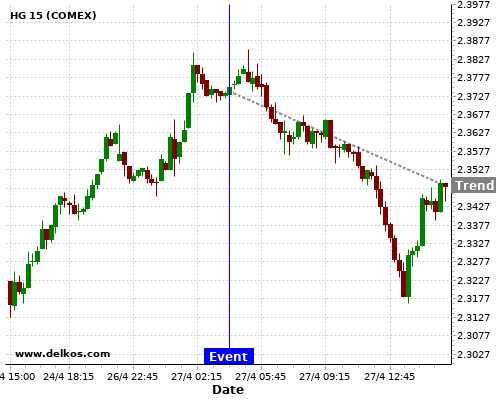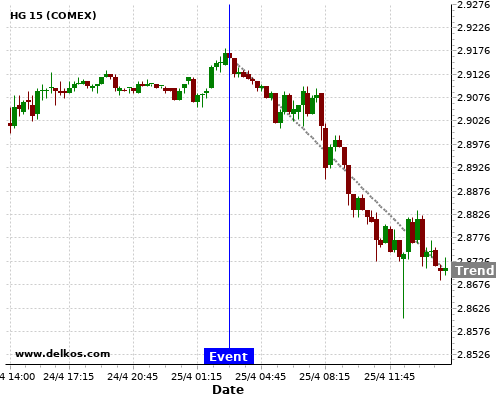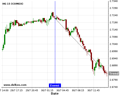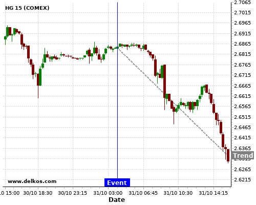 If the number is equal to than economists’ consensus there is a 75% probability that HG will trend down following the news event.
