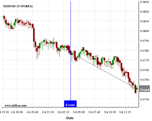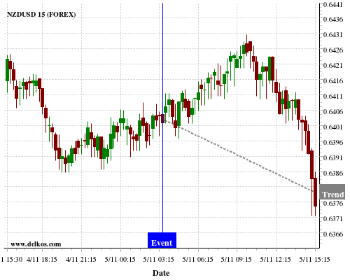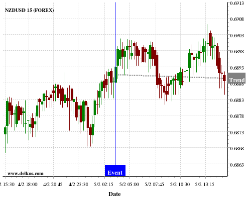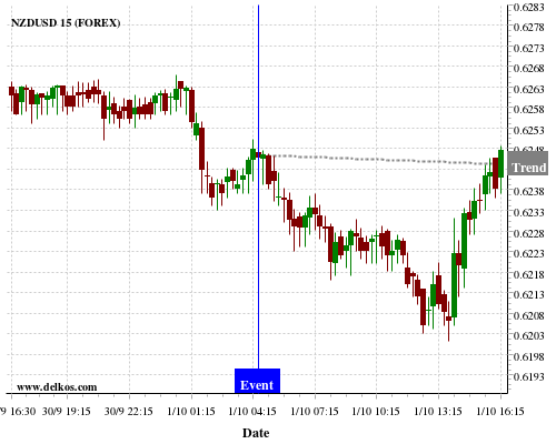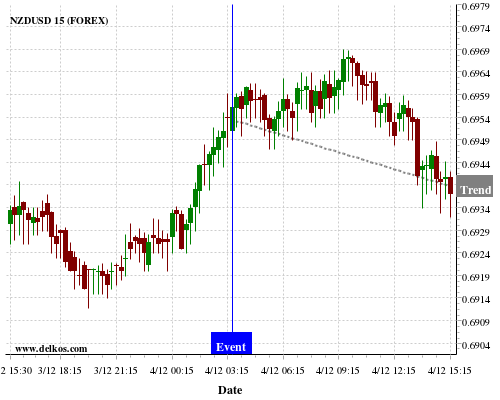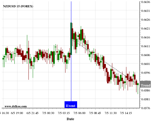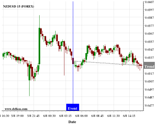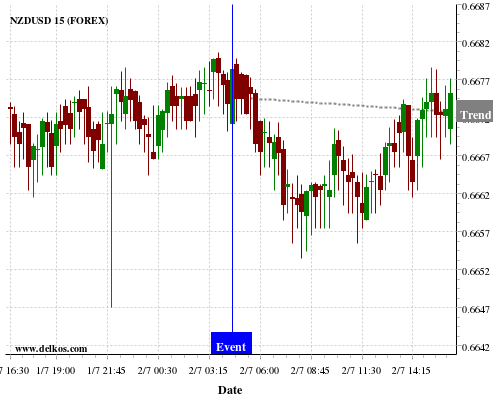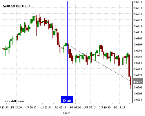 If the number is equal to than economists’ consensus there is a 75% probability that NZDUSD will trend down following the news event.