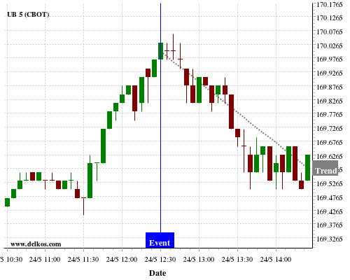 If the number is less than than economists’ consensus there is a 75% probability that UB will trend down following the news event.