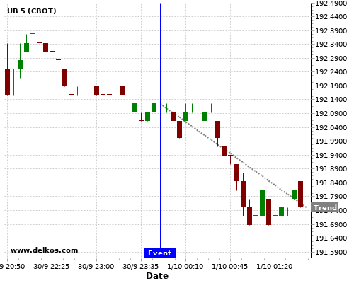 If the number is greater than than economists’ consensus there is a 75% probability that UB will trend down following the news event.