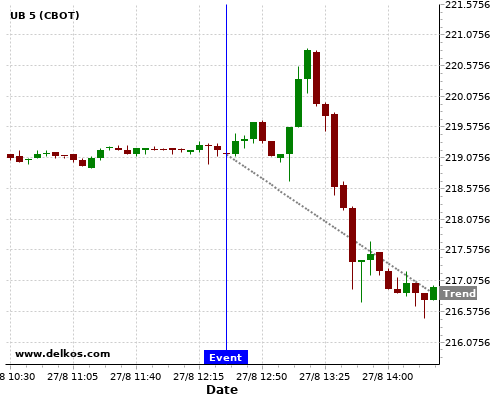 If the number is greater than than economists’ consensus there is a 75% probability that UB will trend down following the news event.