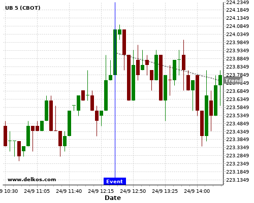 This probability is based on the last 12 US Continuing Jobless Claims events, in which 3 of the last 4 events where the actual number was greater than than the economist consensus resulted in an down trend of UB.