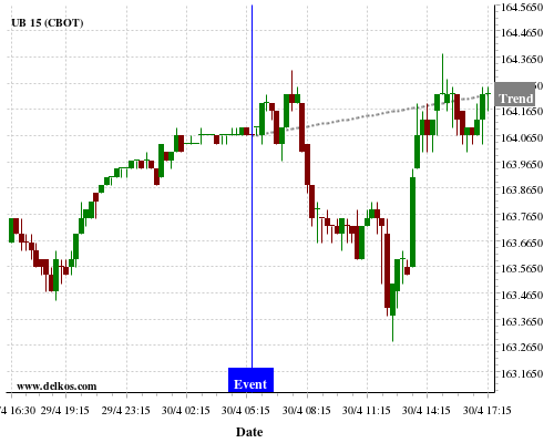 This probability is based on the last 12 FR GDP Growth Rate QoQ Prel events, in which 3 of the last 4 events where the actual number was equal to than the economist consensus resulted in an up trend of UB.