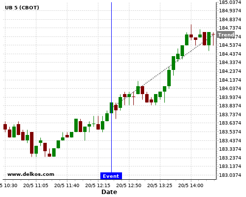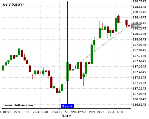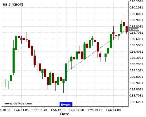 This probability is based on the last 12 US Continuing Jobless Claims events, in which 6 of the last 8 events where the actual number was greater than than the economist consensus resulted in an up trend of UB.