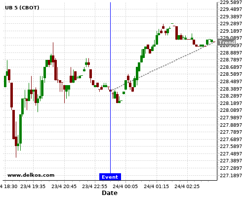 If the number is greater than than economists’ consensus there is a 75% probability that UB will trend up following the news event.