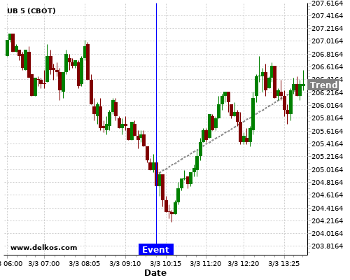 This probability is based on the last 12 EMU Unemployment Rate events, in which 2 of the last 4 events where the actual number was equal to than the economist consensus resulted in an up trend of UB.