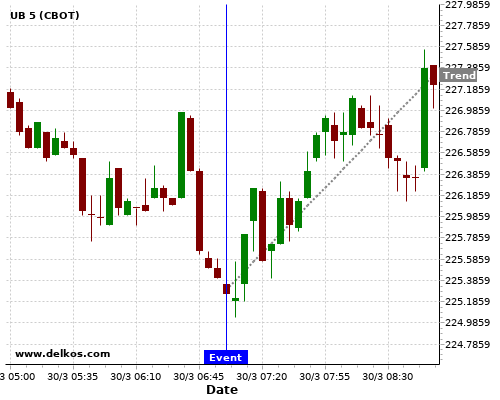 If the number is greater than than economists’ consensus there is a 75% probability that UB will trend up following the news event.