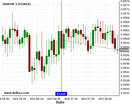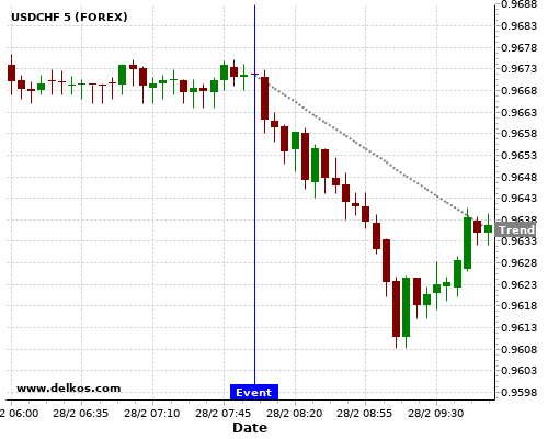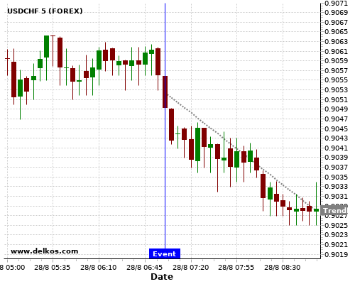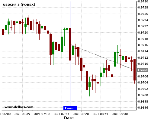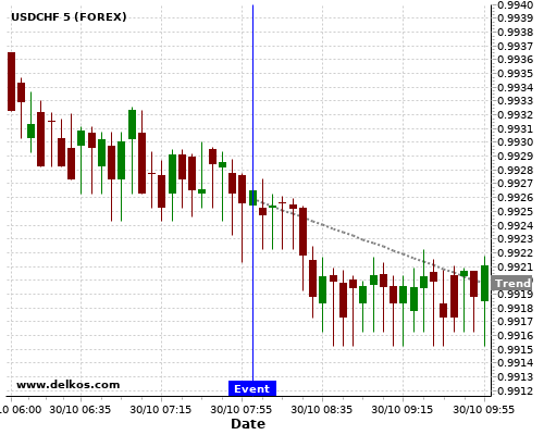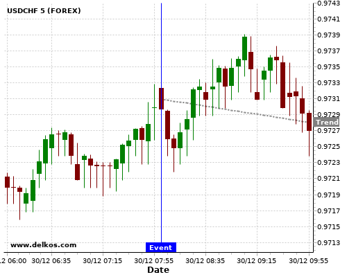 If the number is greater than than economists’ consensus there is a 75% probability that USDCHF will trend down following the news event.