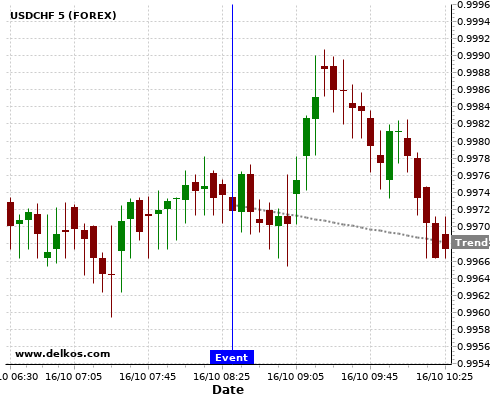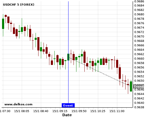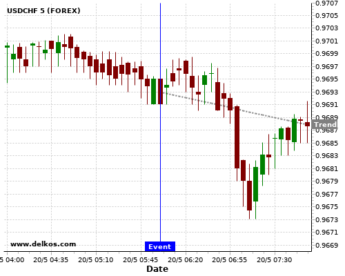 If the number is less than than economists’ consensus there is a 75% probability that USDCHF will trend down following the news event.