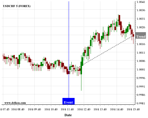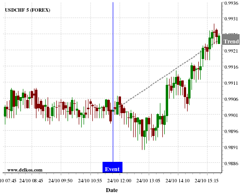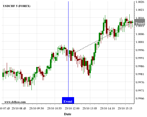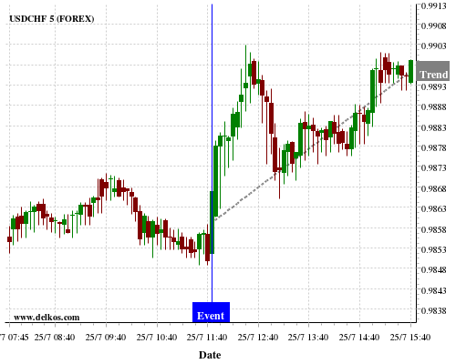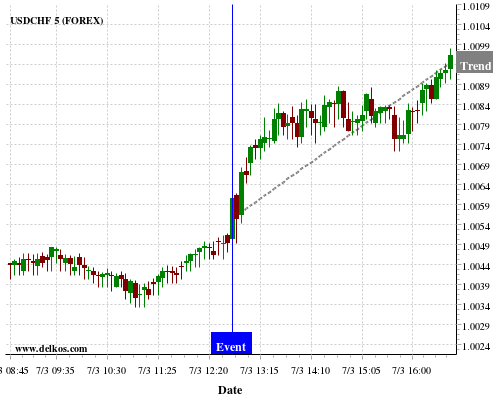 If the number is equal to than economists’ consensus there is a 75% probability that USDCHF will trend up following the news event.