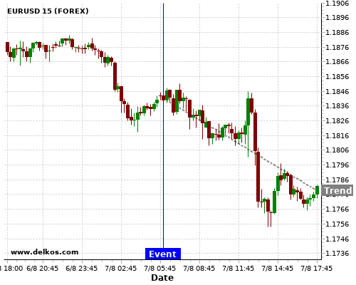 Если показатель Выше чем консенсус экономистов существует 77.77% вероятность того, что EURUSD будет падать после новостного события.