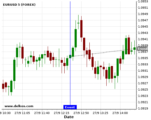 Эта вероятность основывается на последних 12 новостных событиях US Durable Goods Orders MoM, во время которых в 6 из 9 случаев, когда фактическое значение показателя было Выше чем консенсус экономистов – будет расти EURUSD.