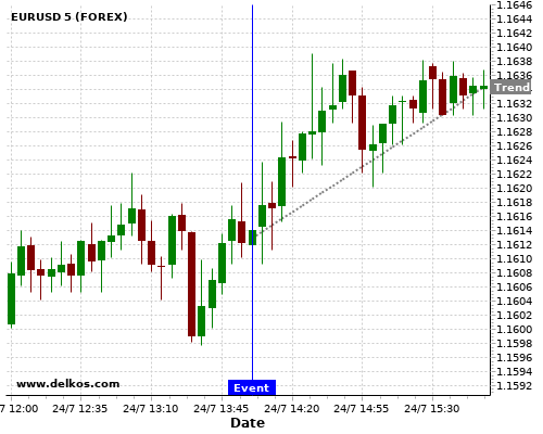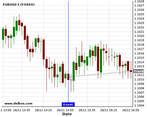Эта вероятность основывается на последних 12 новостных событиях US New Home Sales, во время которых в 4 из 10 случаев, когда фактическое значение показателя было Выше чем консенсус экономистов – будет расти EURUSD.