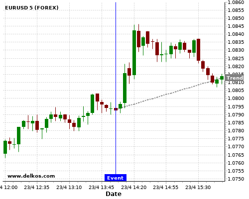 Если показатель Выше чем консенсус экономистов существует 77.77% вероятность того, что EURUSD будет расти после новостного события.