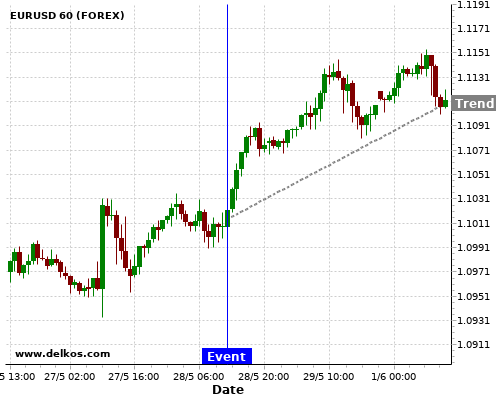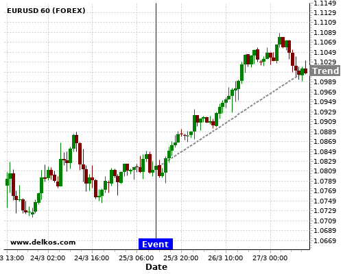 Эта вероятность основывается на последних 12 новостных событиях US Durable Goods Orders MoM, во время которых в 5 из 9 случаев, когда фактическое значение показателя было Выше чем консенсус экономистов – будет расти EURUSD.