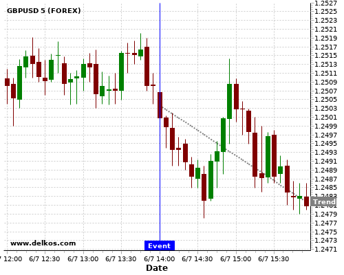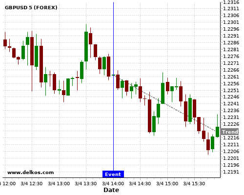 Эта вероятность основывается на последних 12 новостных событиях US ISM Non-Manufacturing PMI, во время которых в 5 из 9 случаев, когда фактическое значение показателя было Выше чем консенсус экономистов – будет падать GBPUSD.