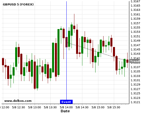 Если показатель Выше чем консенсус экономистов существует 77.77% вероятность того, что GBPUSD будет падать после новостного события.