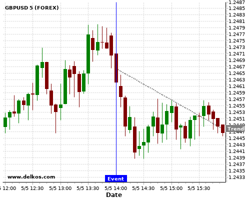 Эта вероятность основывается на последних 12 новостных событиях US ISM Non-Manufacturing PMI, во время которых в 5 из 9 случаев, когда фактическое значение показателя было Выше чем консенсус экономистов – будет падать GBPUSD.
