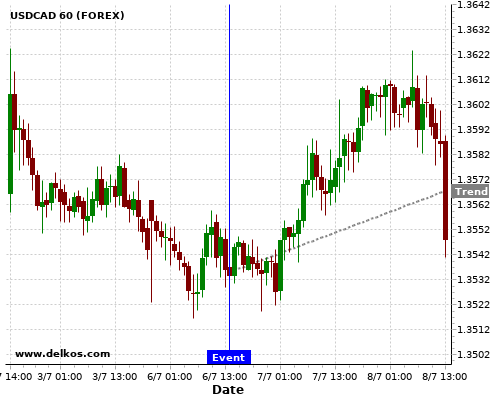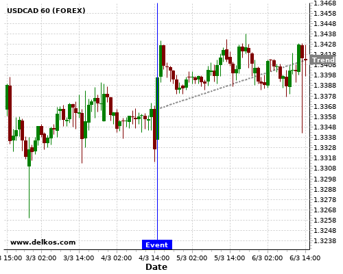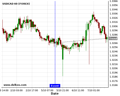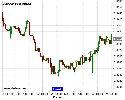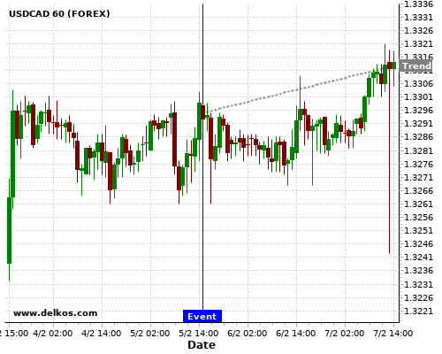 Эта вероятность основывается на последних 12 новостных событиях US ISM Non-Manufacturing PMI, во время которых в 7 из 9 случаев, когда фактическое значение показателя было Выше чем консенсус экономистов – будет расти USDCAD.