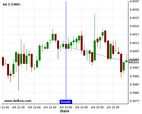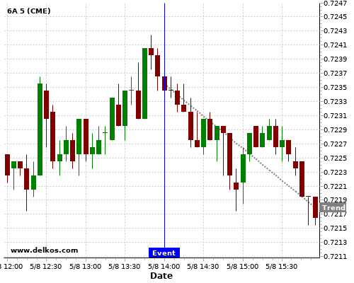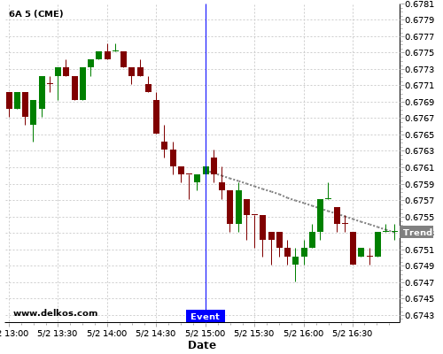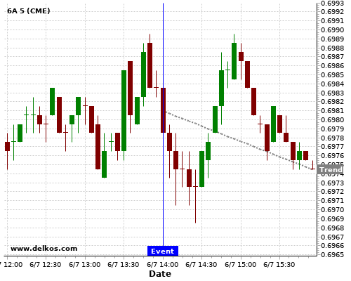 If the number is greater than than economists’ consensus there is a 77.77% probability that 6A will trend down following the news event.
