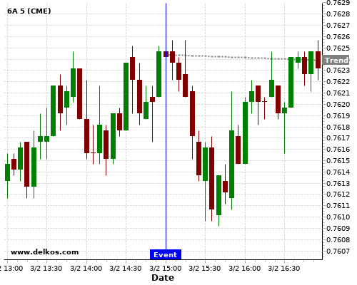 If the number is greater than than economists’ consensus there is a 77.77% probability that 6A will trend down following the news event.